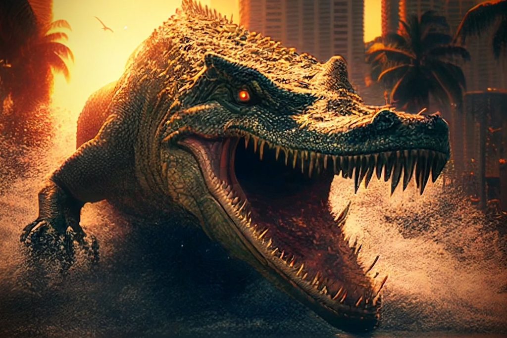 It’s no surprise, then, that enterprising independent filmmakers took advantage of the attention, especially since Cocaine Bear went on to be a mostly well-reviewed box-office hit. When the mockbuster specialists at The Asylum announced their forthcoming project Attack of the Meth Gator (later shortened to simply Meth Gator) on the day that Cocaine Bear was released, it seemed like an inevitability, coming from a company that produces copycat versions of nearly every prospective blockbuster.
