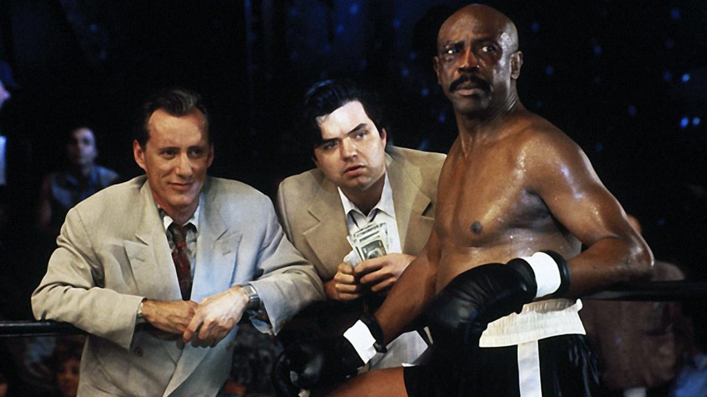 But for as disappointing as Wildcats and The Scout are, Ritchie’s career saw a short, glorious rebound between those films, thanks to a pair of back-to-back comedy crime films centered around sports, both of which saw the filmmaker working at the top of his game. The first of these was 1992’s Diggstown, about dueling gamblers (James Woods and Bruce Dern) who wage a war of attrition against one another revolving around a middle-aged boxer’s (Louis Gossett Jr) attempt to fight ten men over the course of 24 hours.